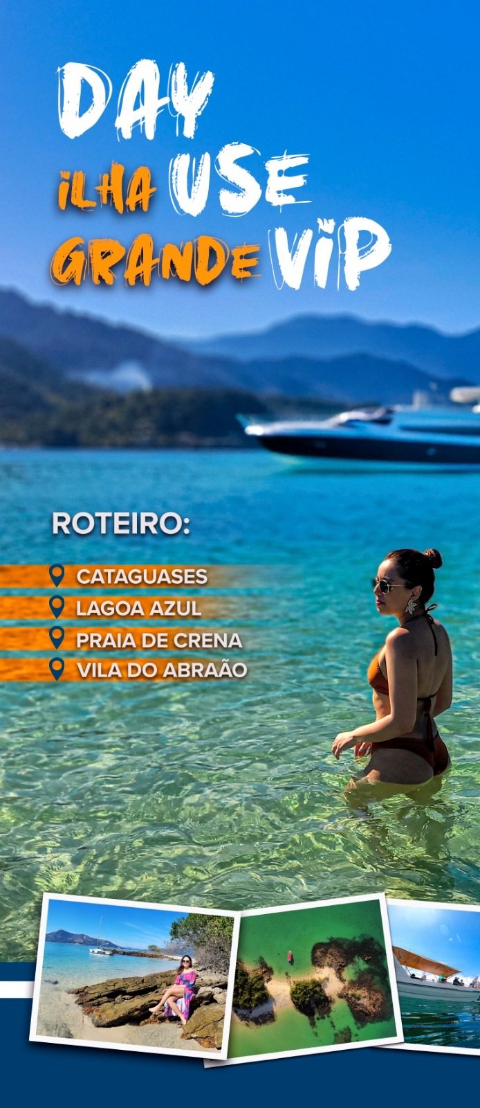 O passeio Day Use Compartilhado pode ser realizado de lancha, bote ou flex boat. A saída é confirmada com um mínimo de 7 passageiros pagantes. Caso o número mínimo não seja atingido e o cliente já tenha feito um pagamento ou sinal, o valor será integralmente reembolsado, sem custos adicionais.